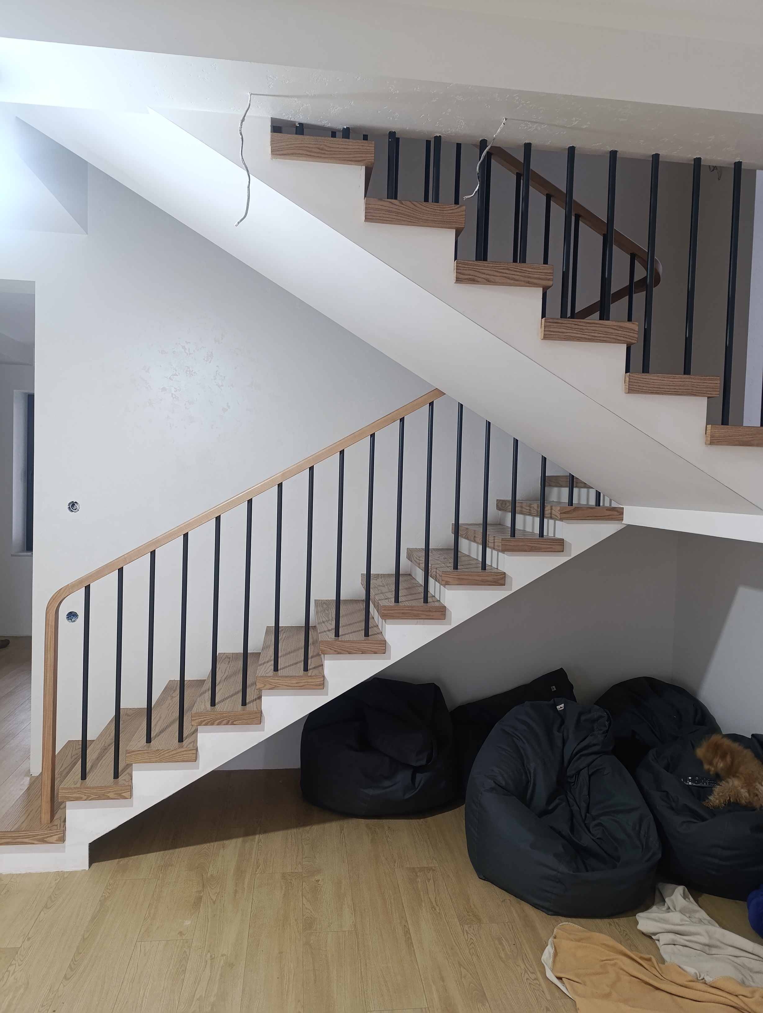 Сходи на металевому каркасі , перший сорт. Ціна сходів залежить від якості матеріалу та сорту деревини.